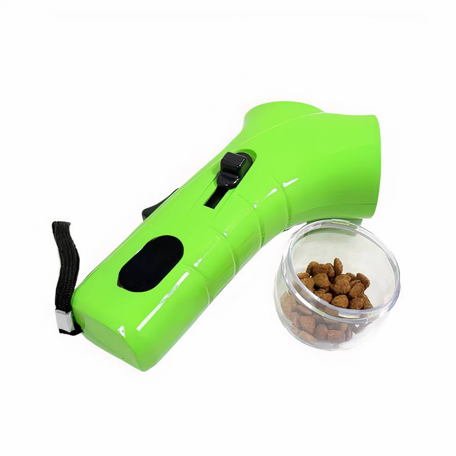 Conçu pour être facile à utiliser, ce lanceur de nourriture est doté d’un système de propulsion puissant qui permet de projeter des morceaux de nourriture sèche ou humide à une distance allant jusqu’à 15 mètres.