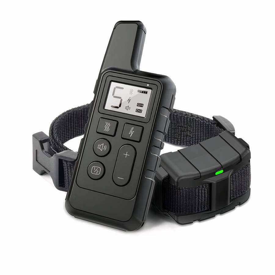 Le collier est également équipé d’une télécommande qui vous permet de contrôler le niveau de correction que votre chien reçoit.