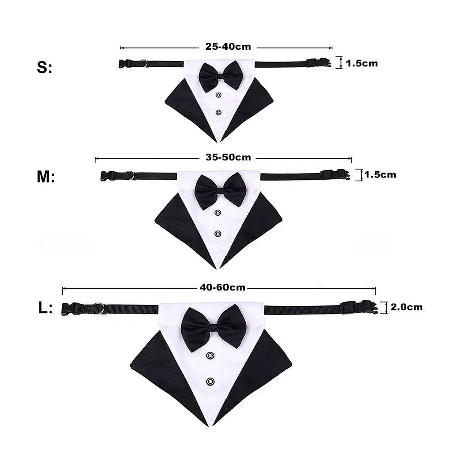 Ce collier bandana comprend un costume de style smoking et un cravate à nœud papillon. Votre animal de compagnie pourra le porter lors d’événements formels comme les mariages, les fêtes, etc.