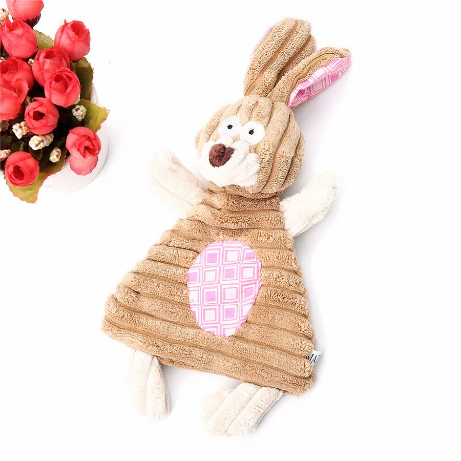 Le matériau de ce lapin en peluche est fait de tissu en polaire résistant aux morsures. Sa matière est douce et sûre pour les dents de votre ami à fourrure.