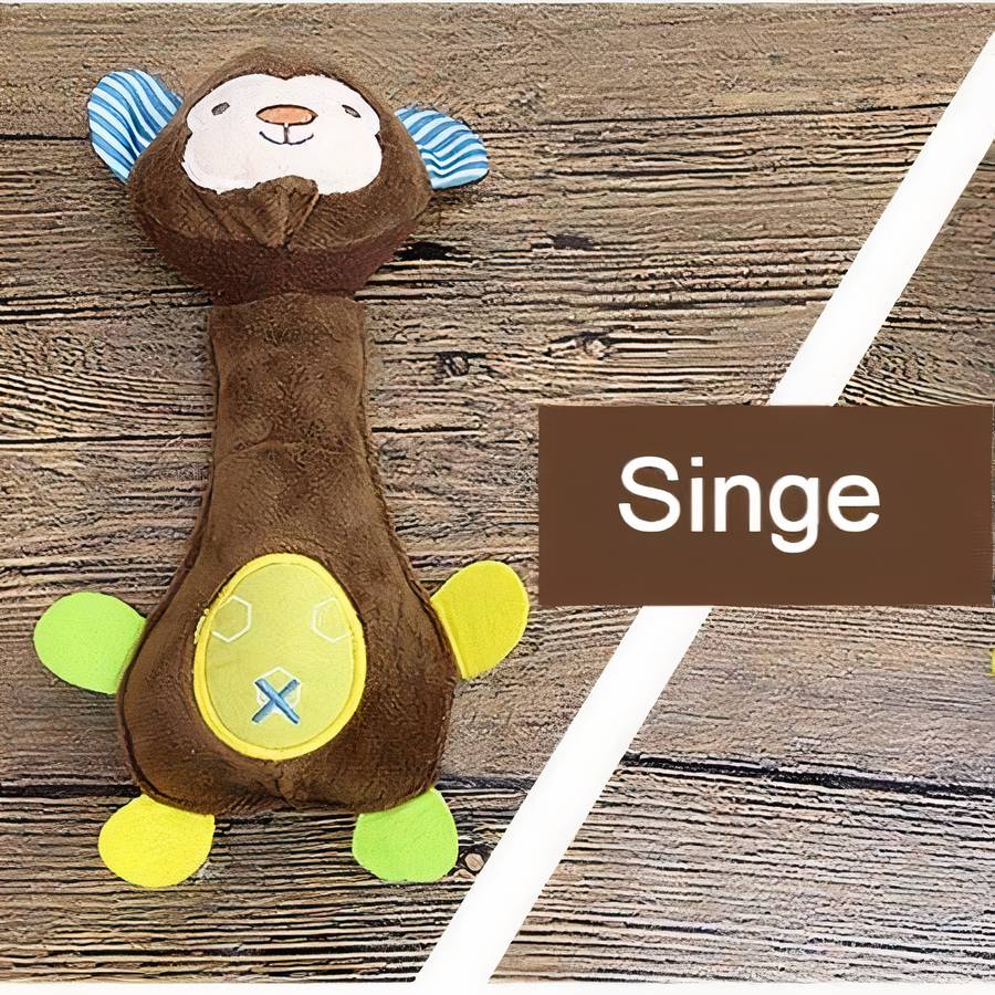 Cette peluche Monkey est aussi un jouet qui couine qui peut émettre un son grinçant lorsqu’on la presse. Ce couinement va non seulement attirer l’attention de votre chien, mais aussi le divertir.