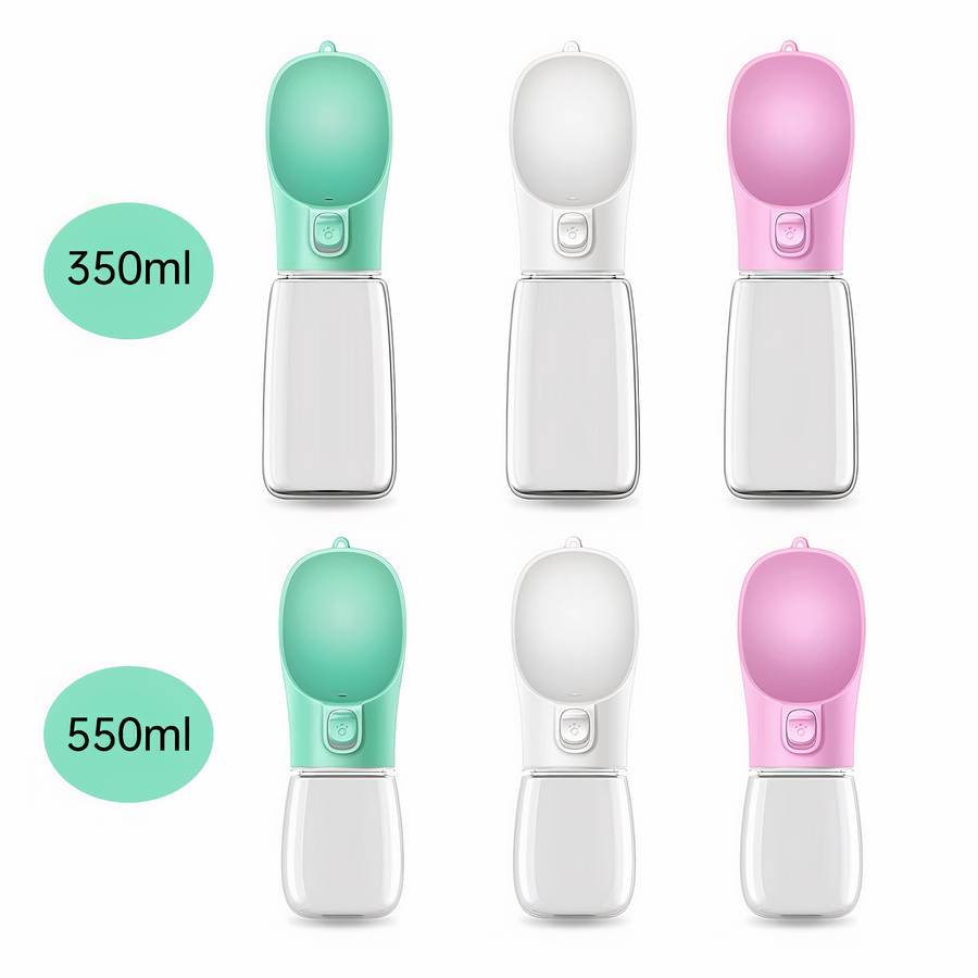 Ces bouteilles existent en deux tailles, un contenant un réservoir de 550 ml d’eau et un pour contenir 350 ml d’eau. Elles sont idéales pour aider les chiens à rester hydratés pendant les journées chaudes.