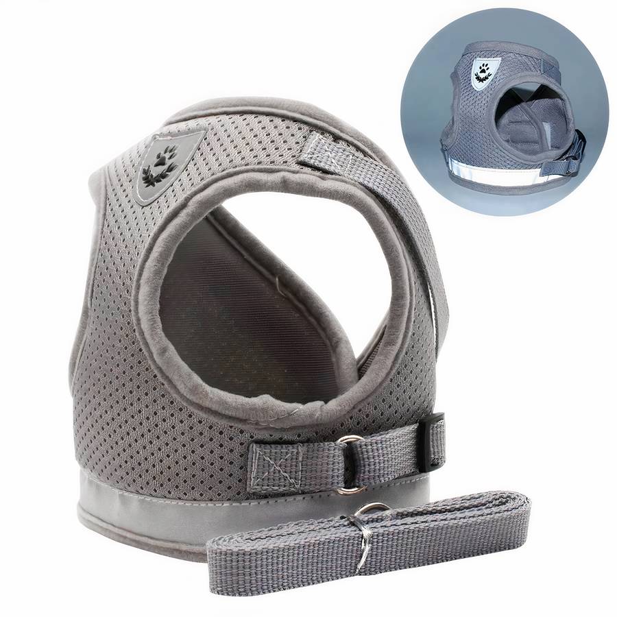 Ce harnais est fabriqué à partir d’un tissu en polyester et en maille. La laisse de l’autre côté est faite avec un matériau en nylon solide et résistant aux tractions.