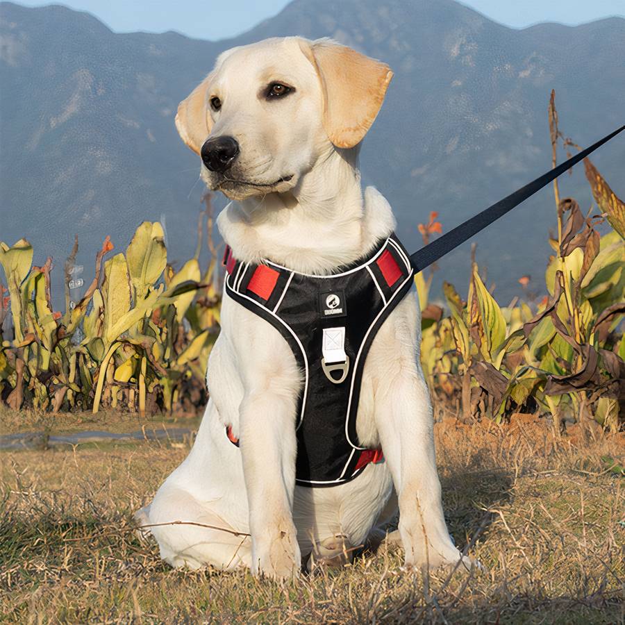 Il est doté d’une sangle réglable et d’un anneau en D en métal qui permet de le fixer à la laisse. La sangle est rembourrée pour plus de confort et la poignée en haut du harnais est pratique pour le contrôler facilement.
