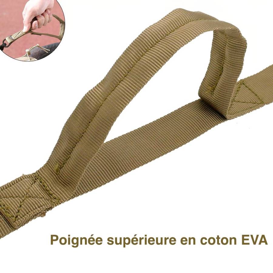 La laisse fournie est faite de nylon durable et résistant aux torsions. Elle est assez longue pour vous donner une bonne prise en main et suffisamment courte pour garder votre chien à proximité.