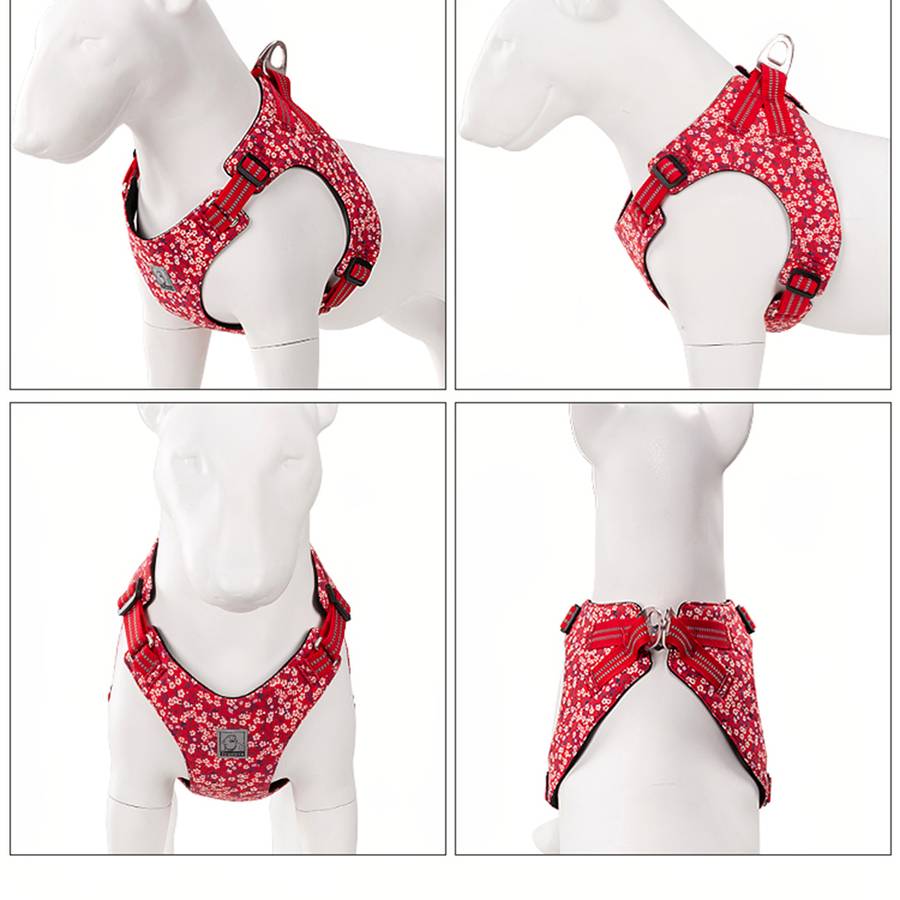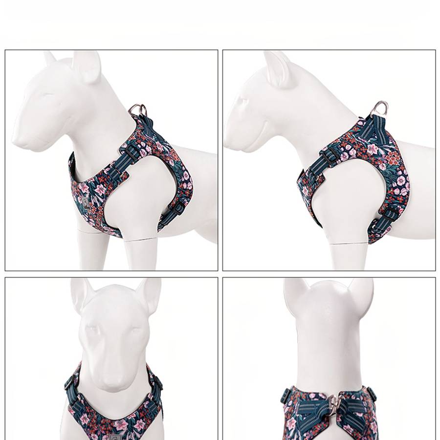 Ce harnais est fabriqué en coton à 100 % et est réglable pour s’adapter au corps de votre animal. Il est idéal pour assurer le confort de votre animal et protéger sa fourrure. Le motif floral ajoutera certainement une touche de style à la tenue de votre animal.