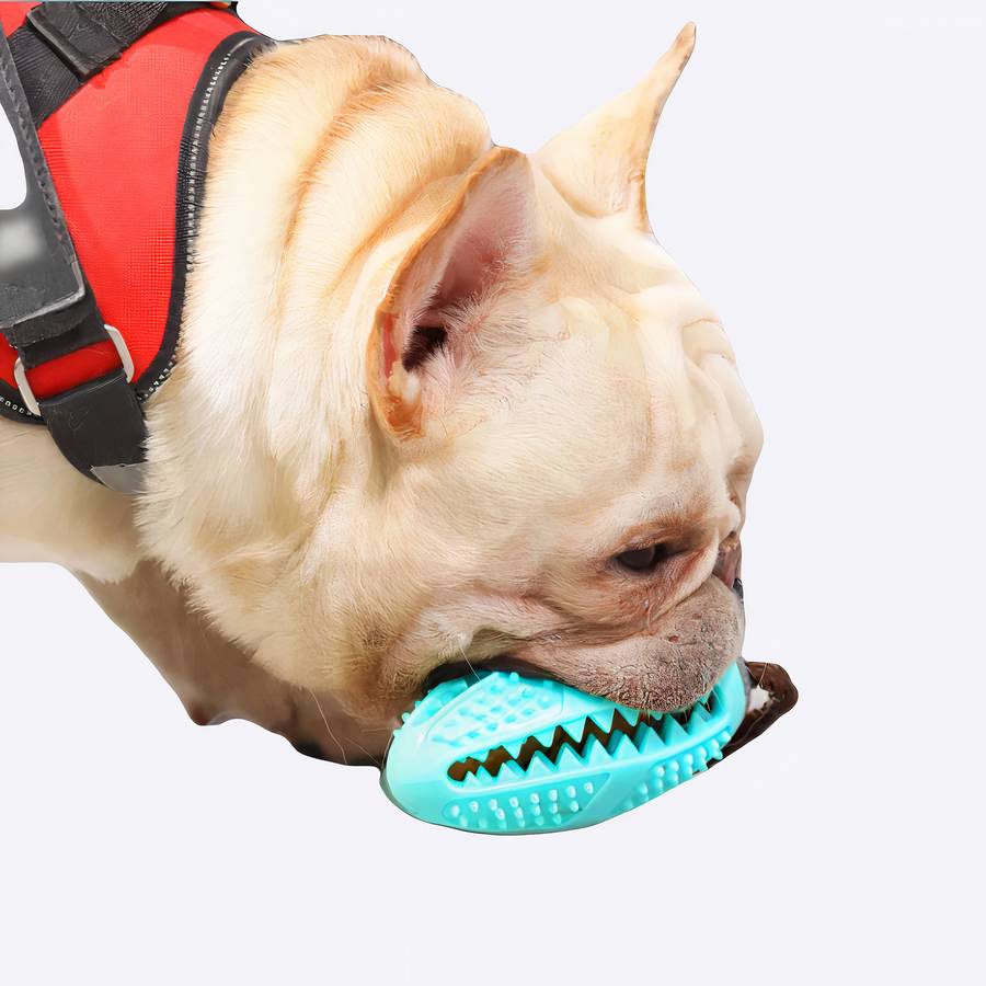 Son design en forme de brosse dentelée nettoie automatiquement les dents de votre chien durant la mastication. En étant fait avec un matériau souple, il y a aucun risque que ce jouet blesse sa mâchoire.