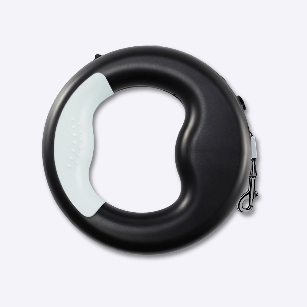 La poignée ergonomique et antidérapante offre une prise en main confortable et sûre, tandis que le système de freinage à bouton-poussoir permet un contrôle facile et précis de la longueur de la laisse.