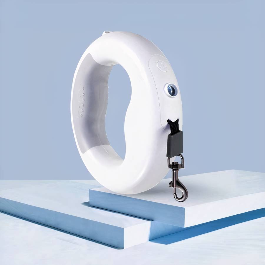 La laisse est également dotée d’un indicateur LED qui s’allume lorsque le chien s’éloigne trop de son propriétaire, afin de le rappeler à l’ordre.
