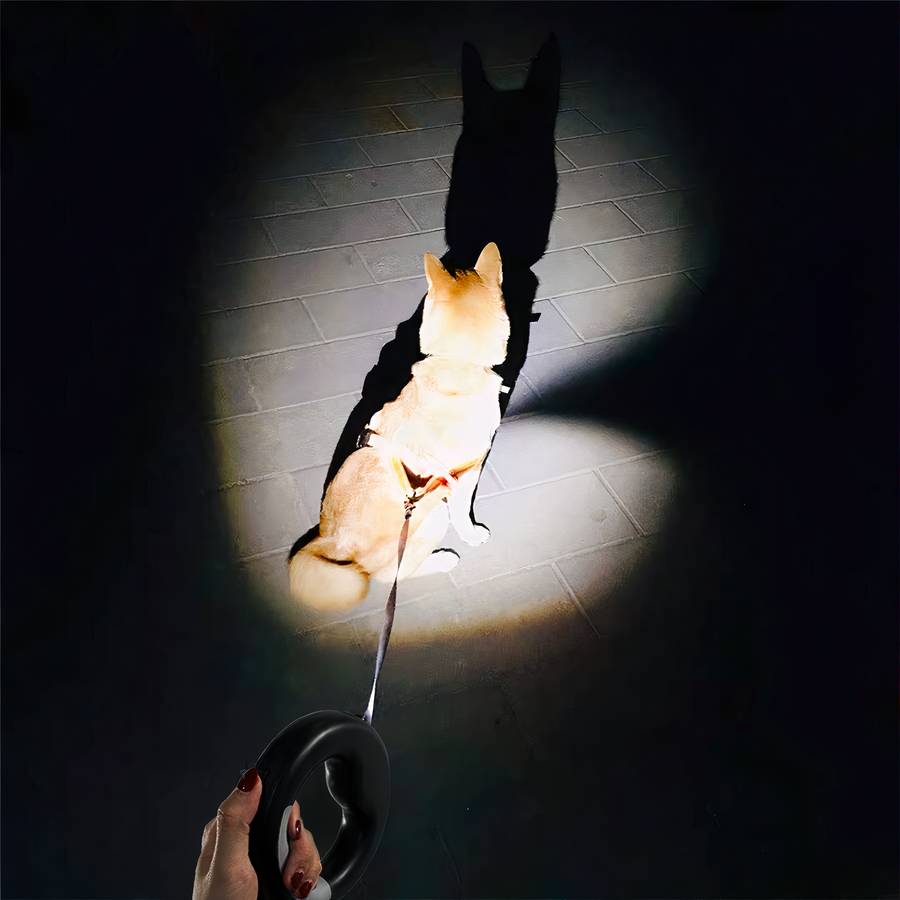Cette laisse est munie d’une lampe LED avec une haute luminosité. Ce qui la rend super pratique pour éclairer votre chemin pendant vos sorties avec votre chien la nuit.