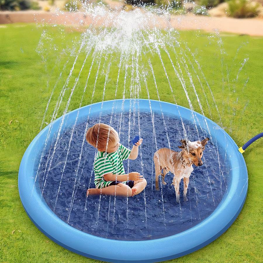 Parfait en plein été, notre tapis jet d’eau va rapidement devenir le jouet préféré de votre chien ! Il passera son temps à s’amuser à passer entre les jets et pourra même se coucher pour se reposer sur le tapis s’il a trop chaud.