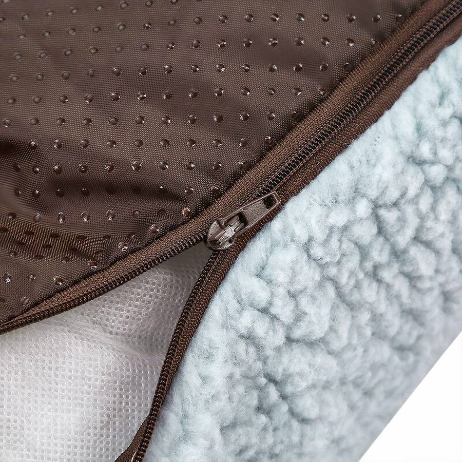 La couverture en flanelle est amovible et lavable en machine, ce qui facilite le nettoyage et le maintien de l’hygiène. Les coussins intégrés sont également amovibles et lavables.