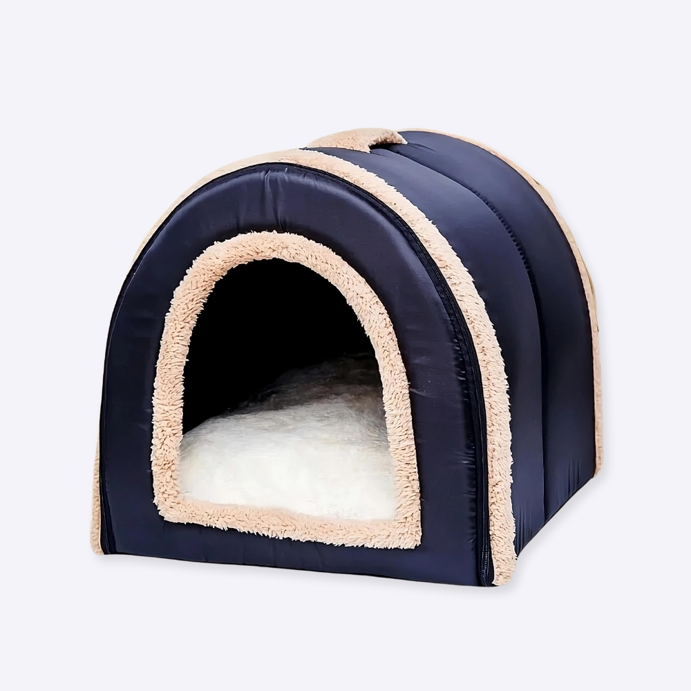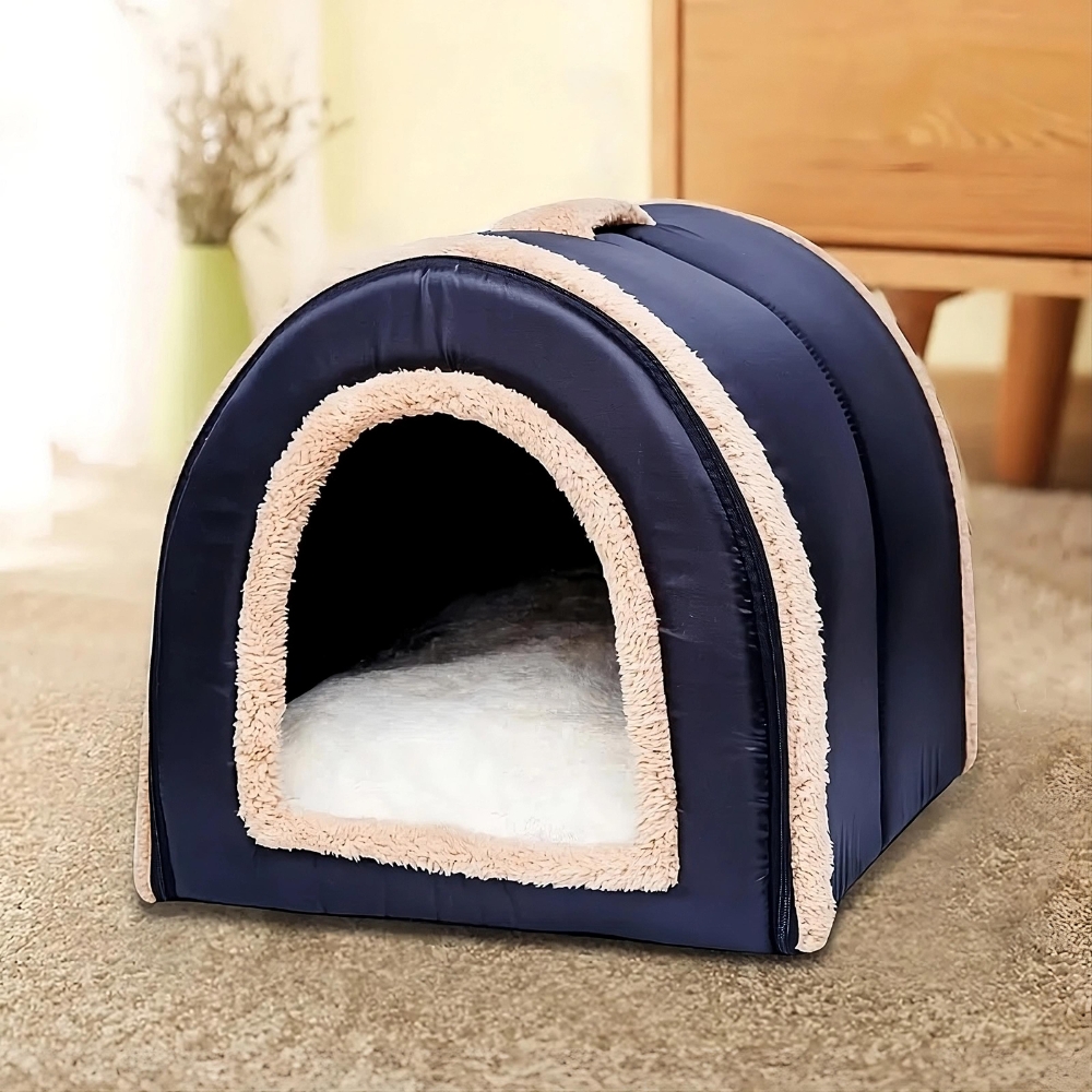 Cette niche en tissu comprend une poignée rembourrée sur le toit pour être facile à transporter. Elle est aussi pliable pour être rangé de manière compacte dans votre tiroir.