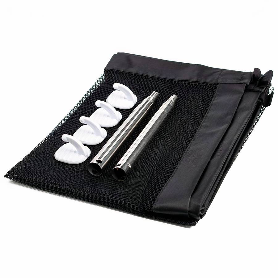 La structure est faite d’acier galvanisé qui est peint avec une finition noire durable. Les poteaux sont également recouverts d’une protection en plastique pour empêcher la rouille et l’usure.