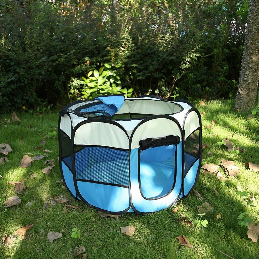 Cette tente est entièrement fermée, laissant uniquement l’avant ouvert pour que votre animal puisse y sortir et entrer à son gré. Elle est aussi pliable et suffisamment léger pour être portable facilement.