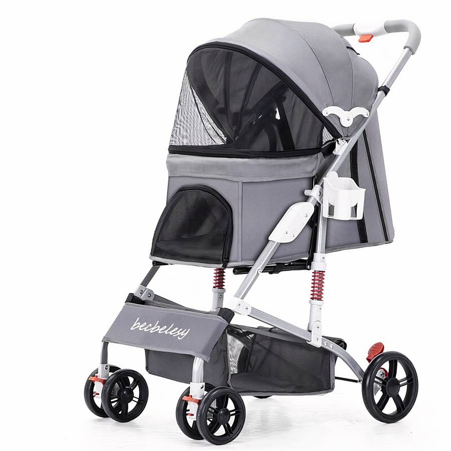 Le tissu résistant à l’eau et aux rayures est respirant et confortable pour votre animal de compagnie. Les roues avant pivotantes et les roues arrière à suspension offrent une conduite stable et silencieuse.