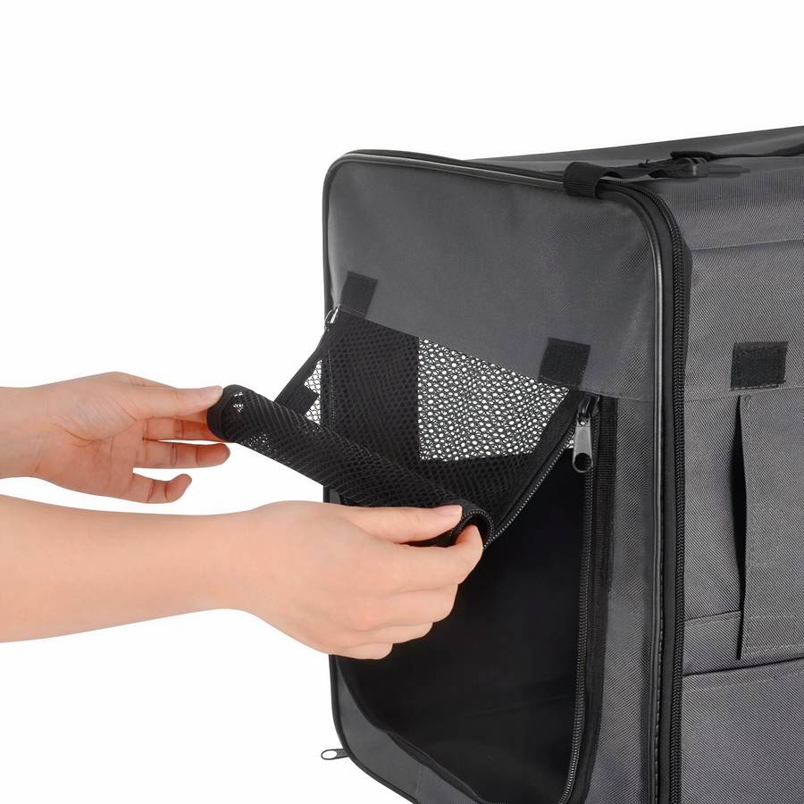 La porte en maille avec fermeture éclair et les fenêtres en maille des deux côtés assurent une bonne circulation de l’air. Ce sac de transport est donc l’accessoire idéal pendant les journées chaudes en été.