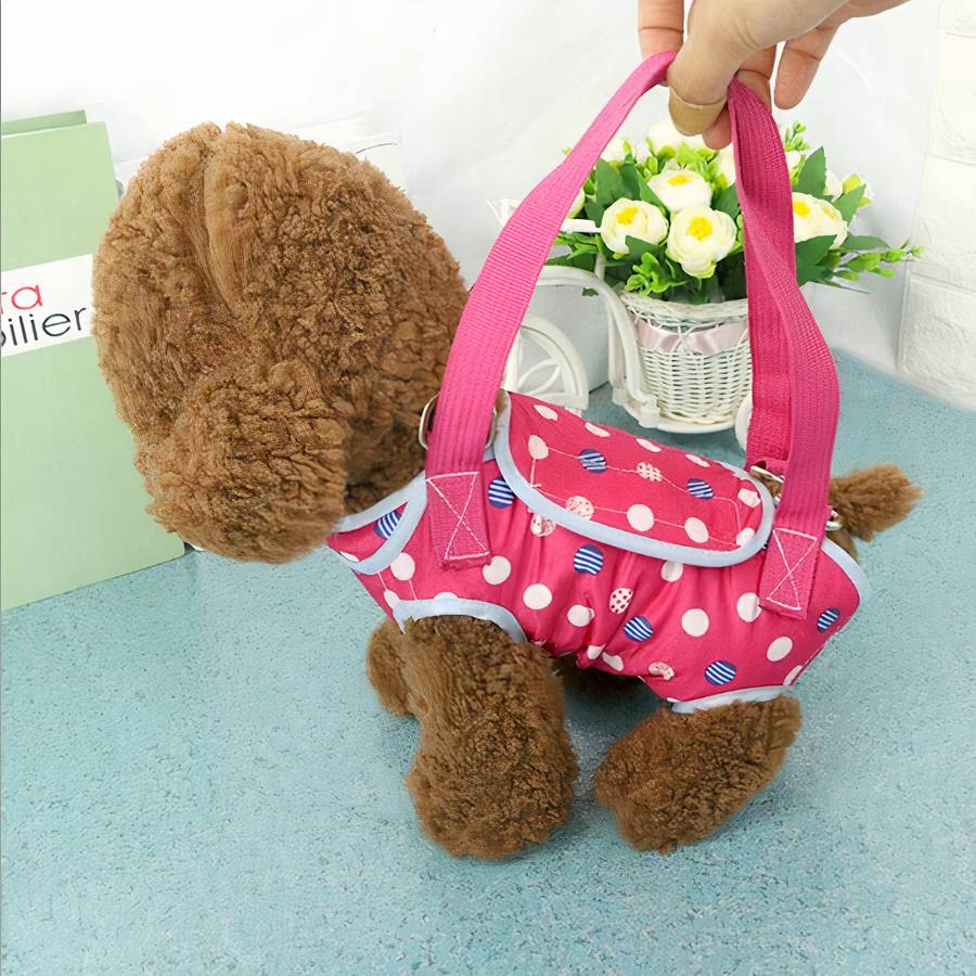 Le harnais est équipé d’une fermeture à velcro qui se fixe fermement afin d’assurer un portage plus sûr. Il est fait avec du matériau polyester imperméable, durable, doux et confortable pour les chiots.