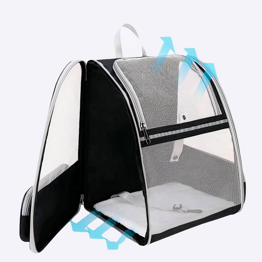 Doté d’une porte en maille avec fermeture éclair sur le côté et sur le devant pour faire entrer et sortir votre chien du sac. Il contient aussi un coussin douillet et une ceinture à l’intérieur.