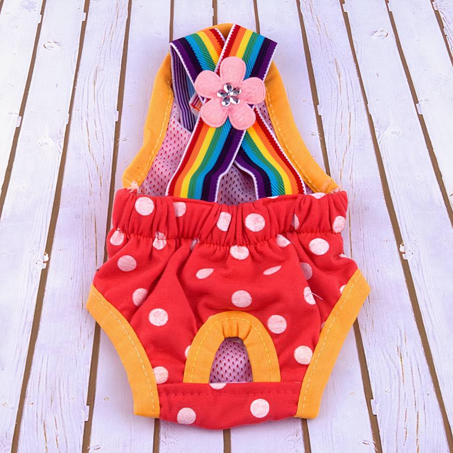 Cette jolie culotte lavable à pois pour chien est un must-have pour tous les propriétaires de chiens qui veulent offrir à leur animal un look tendance et confortable.