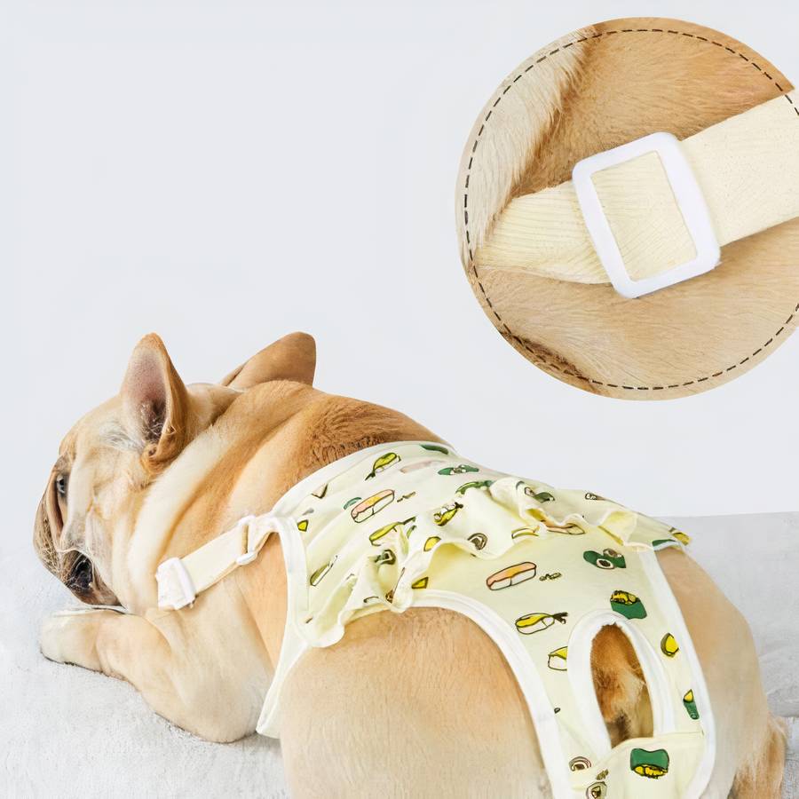 L’avantage de cette superbe culotte est qu’elle est dotée d’une poche dans laquelle la queue de votre chien est maintenue à l’écart. De plus, sa fabrication en coton assure un confort maximal sur votre chien et prévient des possibles irritations.