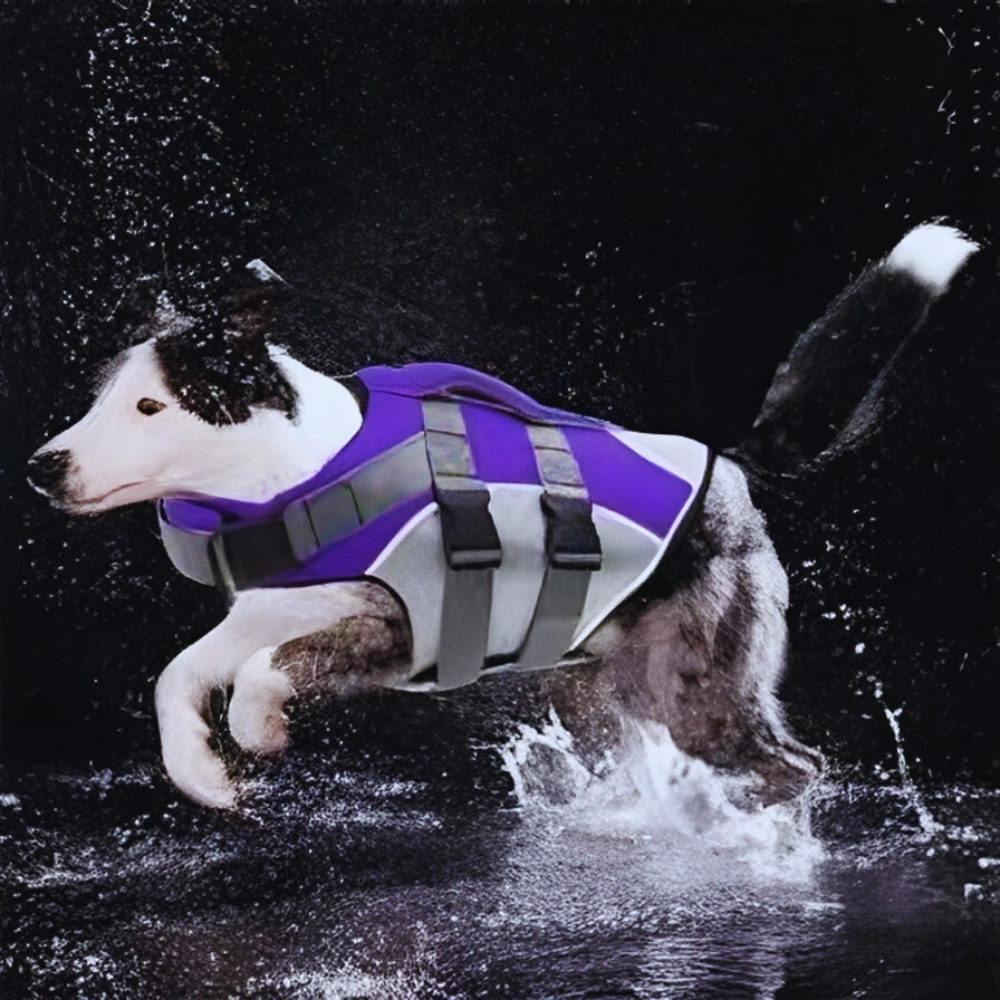 Sa coupe ergonomique assure une grande liberté de mouvement, tandis que sa forme spécialement conçue permet à votre chien de flotter à la surface.