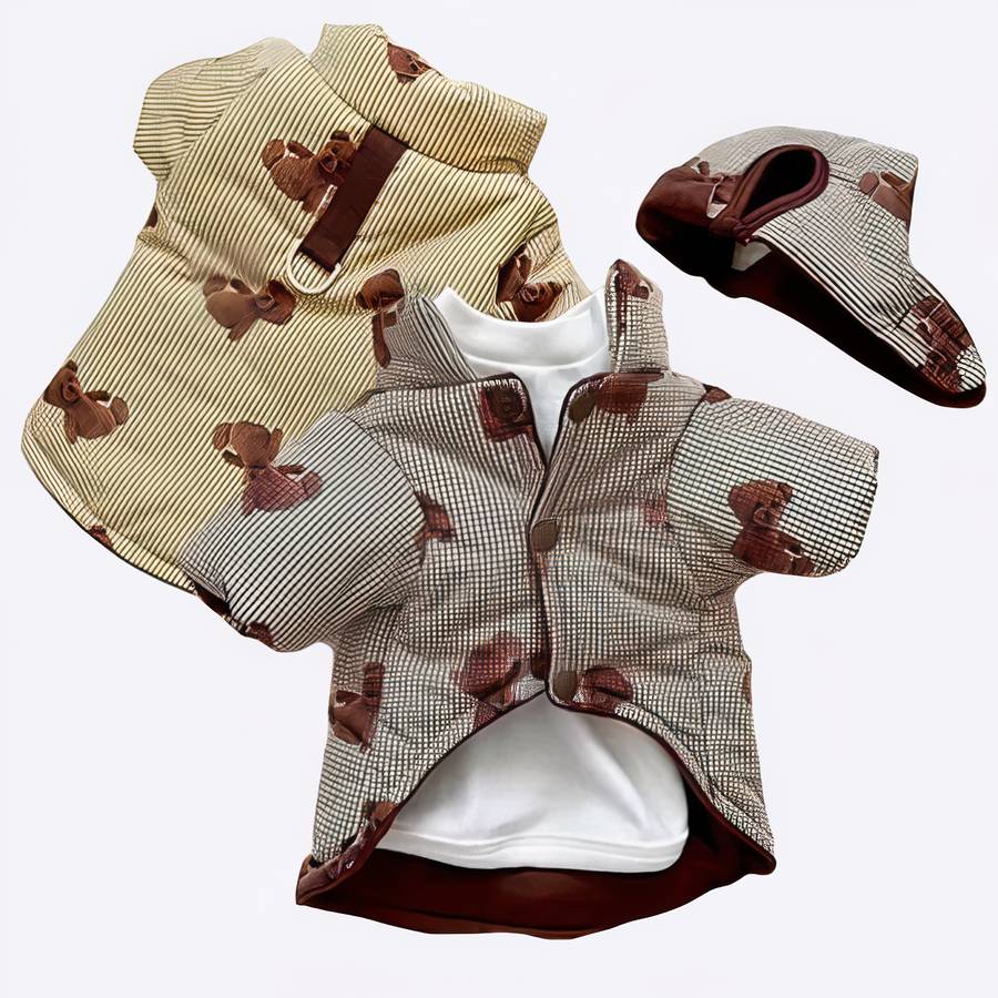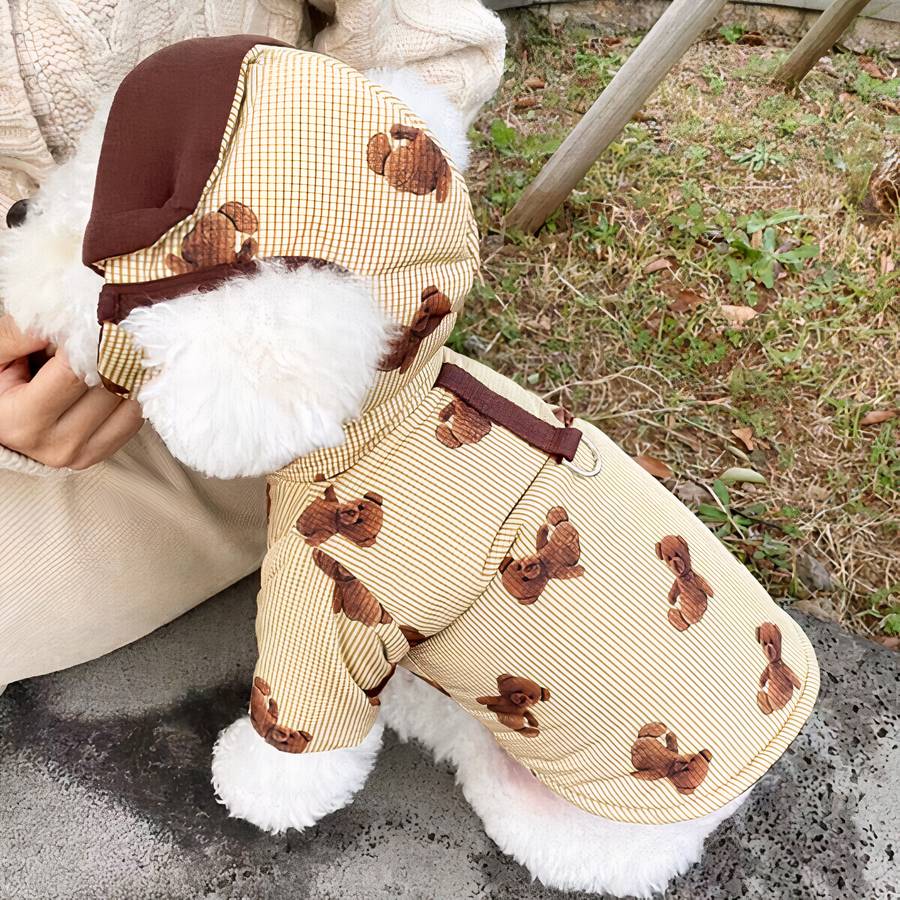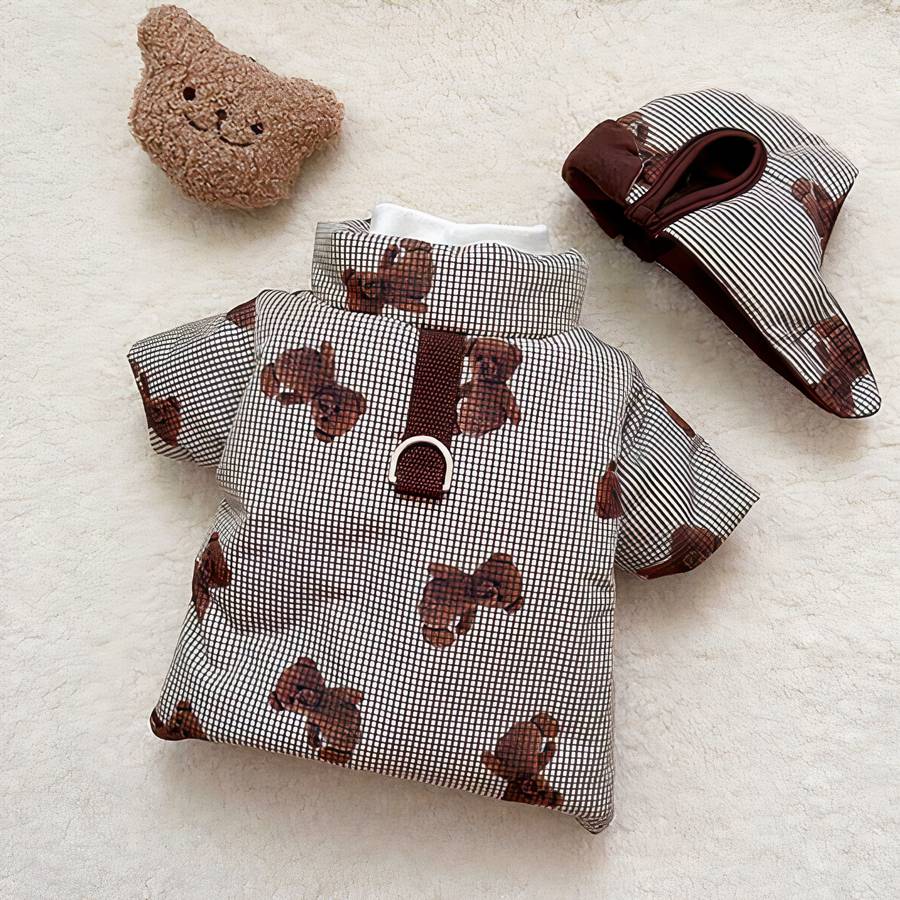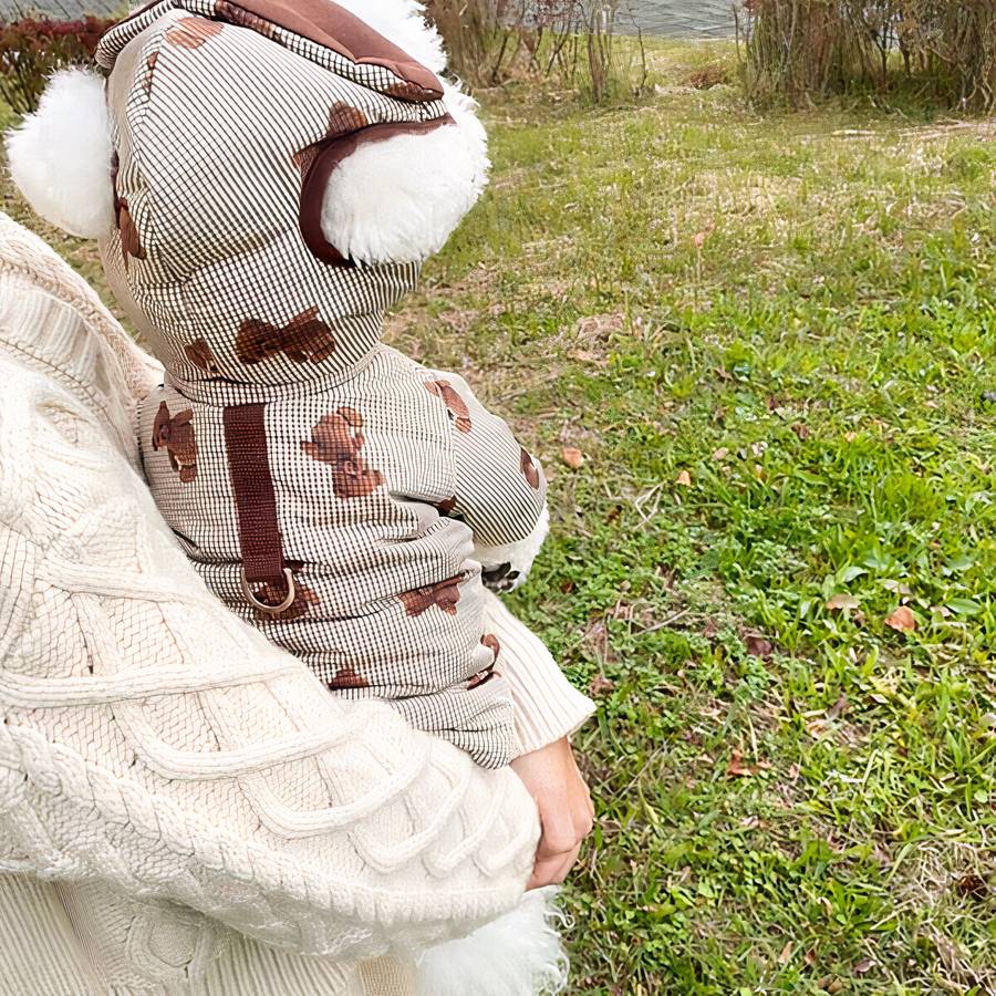 Cette doudoune à petits carreaux ne fait pas que suivre la tendance britannique. L’intérieur polaire assure une chaleur douce, tandis que les motifs d’oursons ajoutent une touche de fantaisie. La capuche protégera votre chien des intempéries et gardera la tête de votre chien au chaud.