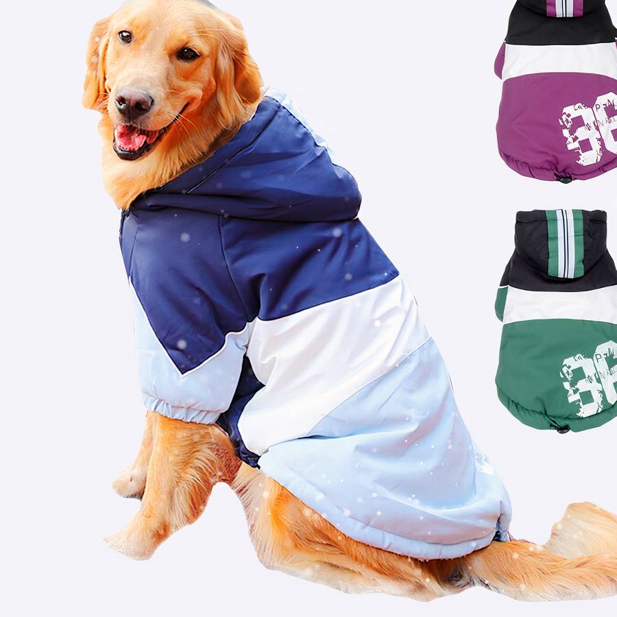 Ce manteau est disponible dans une variété de couleurs et de tailles pour s’adapter à tous les grands chiens.