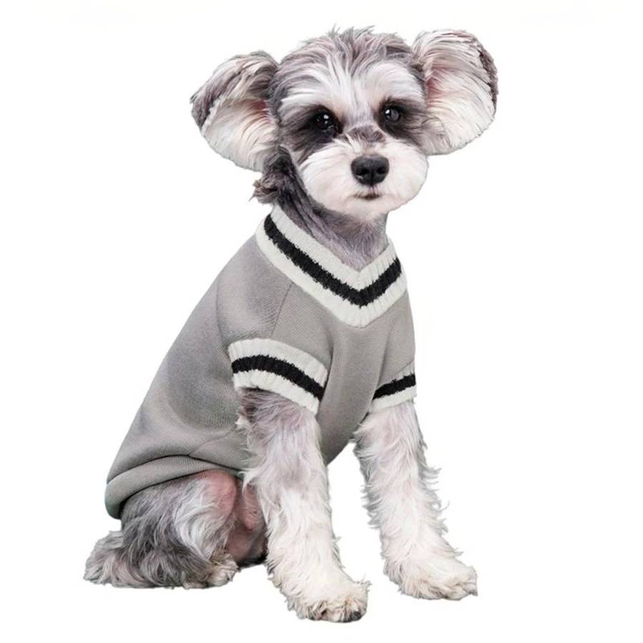 Notre pull pour chien est truffé de détails qui vous rappelleront les look de vos séries américaines préférées. Transformez votre chien adoré en étudiant de campus US avec ce pull au col en V et bracelets de manche à rayures. L’écusson brodé sur le dos rappelle les blasons des grandes universités.